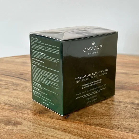 Overnight Skin Recovery Masque becomes the Overnight Reviving Mask.Fast-acting, yet gentle on the skin, fall asleep with a thin layer of this impressive Orveda Overnight Reviving Mask on your face and wake up to find a smooth, less tired-looking complexion. Highly hydrating, it smooths out visible signs of fatigue caused by the dehydration that occurs naturally overnight.