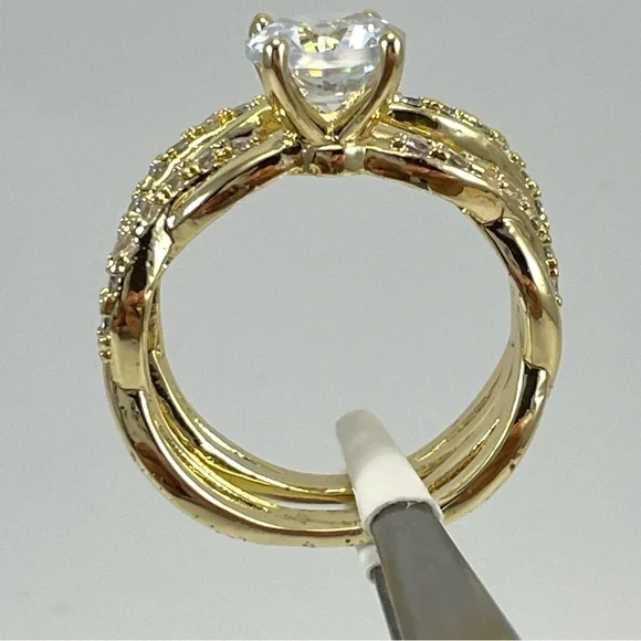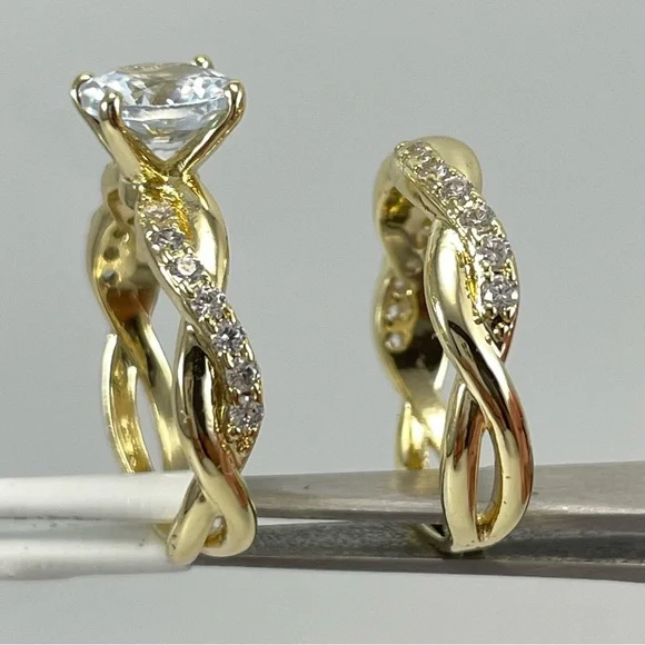 Beautiful Round Cut Solitaire 2 Pice Wedding Band Set Diamond CZ Gold Tone Plated Ring All Stones are Cubic ZirconiasOther listings: cuban paper clip chain link hip hop dainty chunky solitaire carat radiant present zirconia square sterling tanzanite 16” vintage eternity morganite encrusted ruby pave couple’s jewelry setting rare diamonds sapphire promise jewelers green heirloom fairy purple past platinum ring present rainbow nile micro future gem stones baguette delicate heavy shell half bridal baby rhodium set band link 18k australian engagement anklet box zales long emerald cow statement 750 peridot everrealli platinum 925 silver teal 3 brilliant heart sapphire 10k midi stackable 18” flower multi daisy butterfly wrap rose double swirl side jewel moon star love pinky 19” bracelet ear anniversary pinky wide yellow wedding citrine natural tall bridal pearl necklace 20” twisted stone rope sun kay lightweight cream knuckle thin 6 wide paperclip lariat turtle chakra oval amethyst cz 14kt pave watch cross gift low two fancy future huggie stone bangle weight tone white delicate antique clarity bling tri crystal