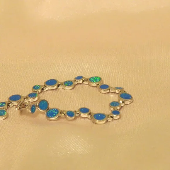 $500 Blue Opal Sterling Silver Bracelet 7"Welcome To MikeAdam Jewelry.We have been in the Jewelry business over 30 Years and it all started on 1988 in a Brick & Mortar in Jackson Heights Queens as Mike’s Jewelry inc serving millions of Happy customers with all their jewelry needs and service of repair and custom jobs.We are offering 10k,14k,18k , Sterling Silver, custom jewelry , Stainless steel, Gold Plated,Gold field,and many custom jewelry in all prices.Jewelry with Gemstone and Diamonds and as well as .Pearls-Jade-Emerald Amethyst Coral Lapis lazuli Diamond Turquoise and many many more.